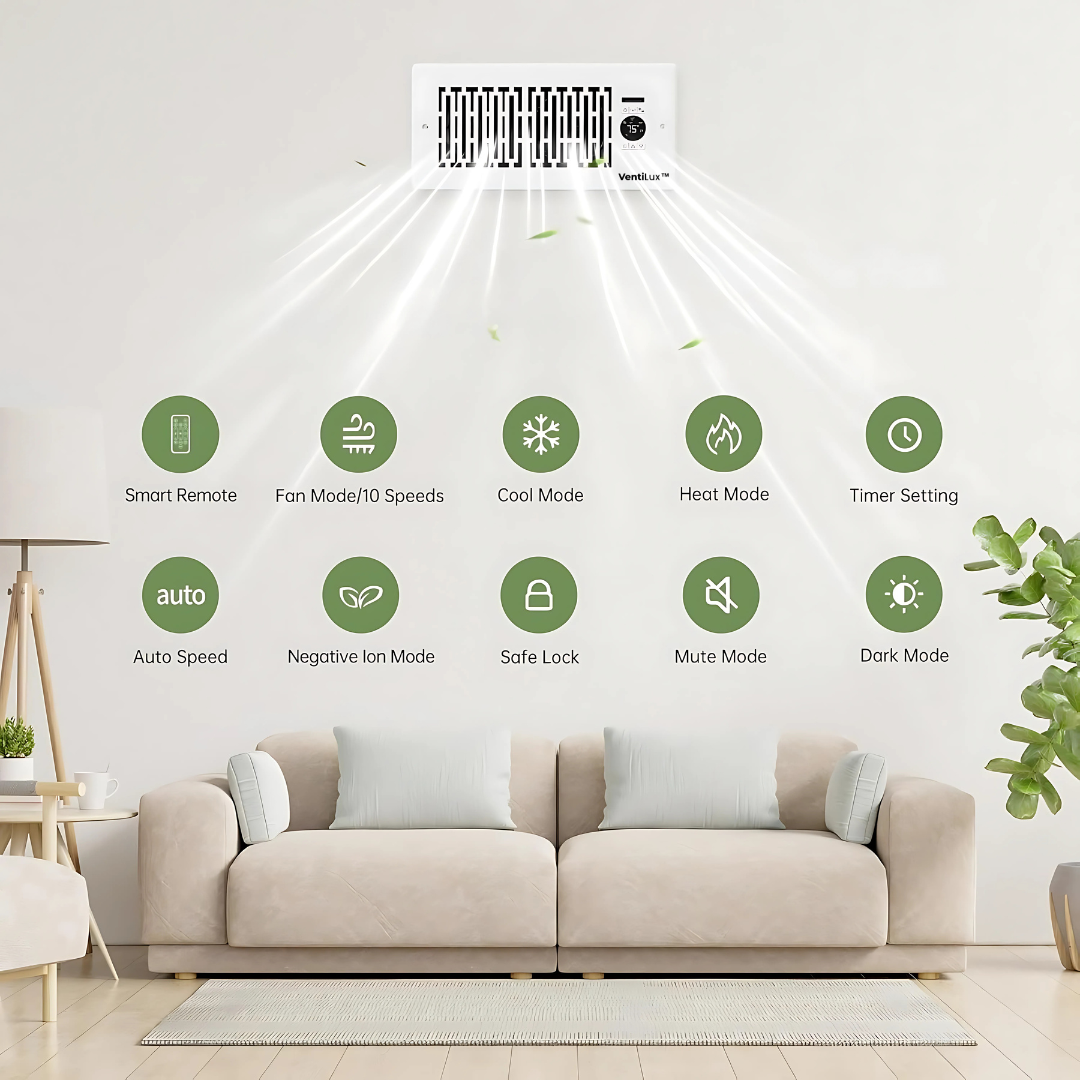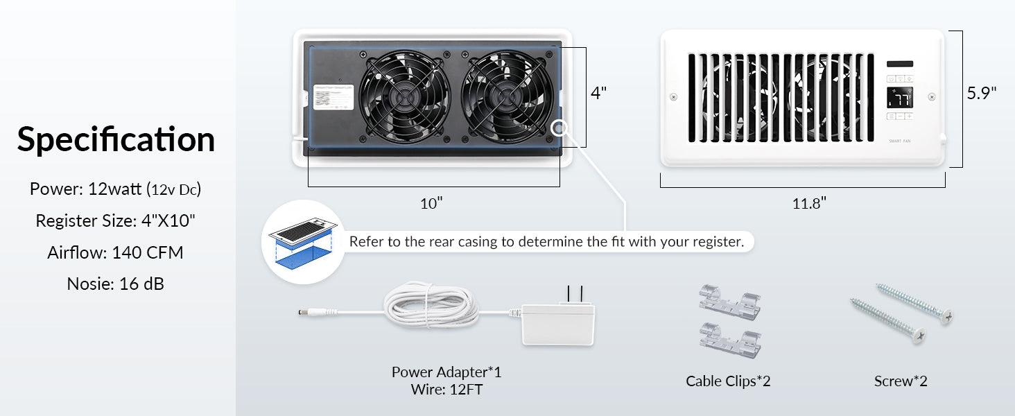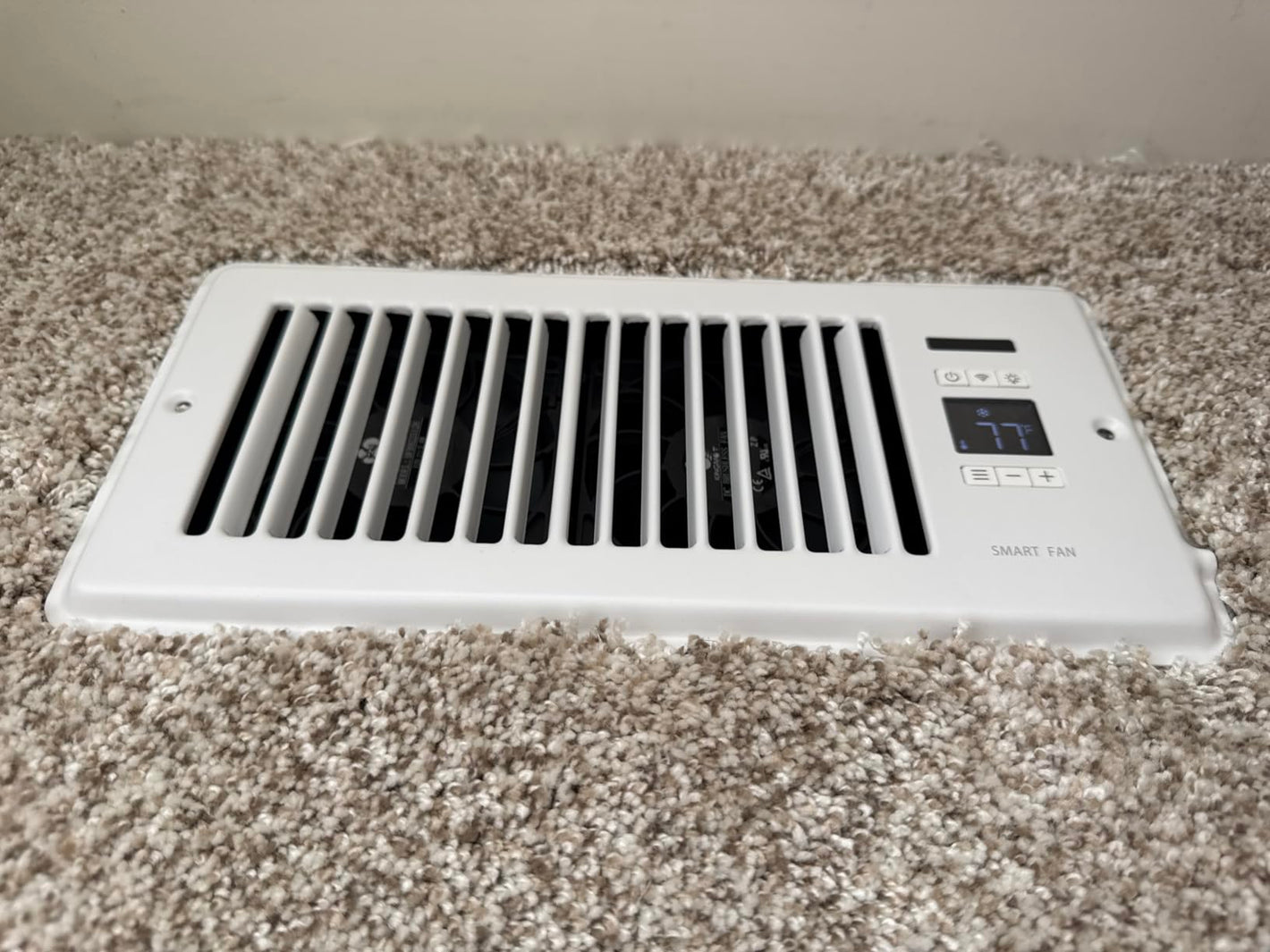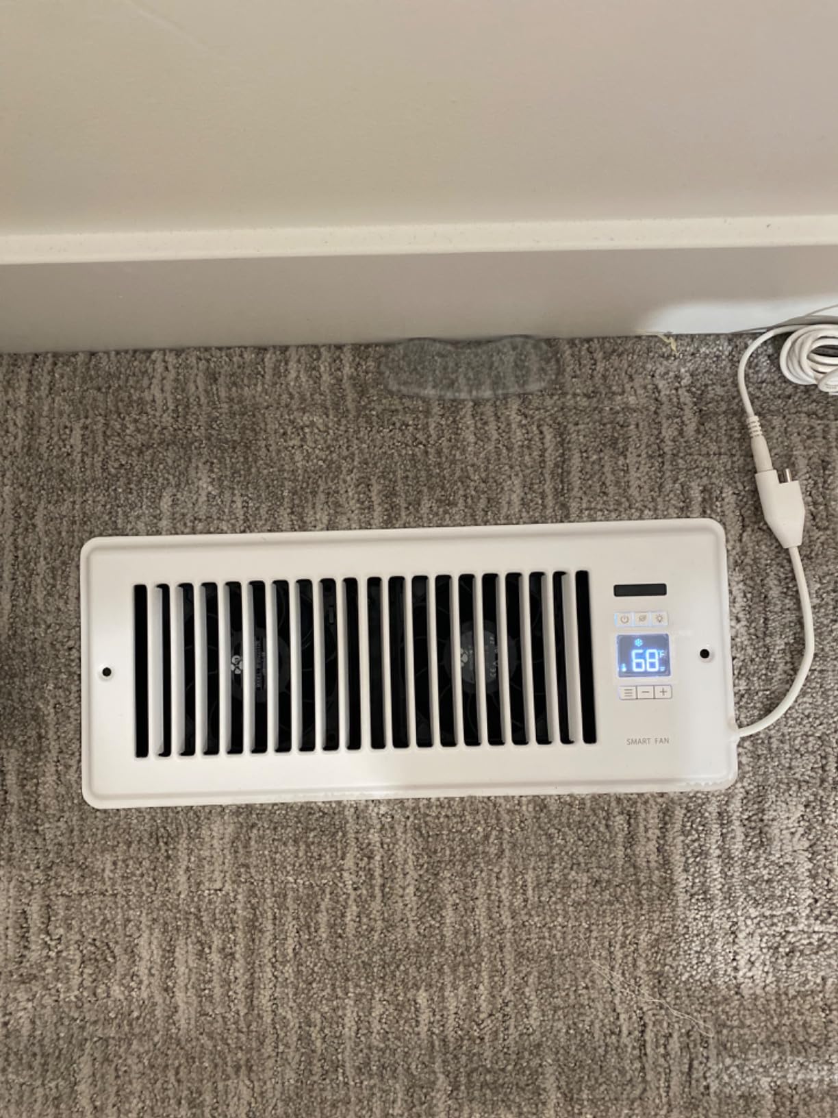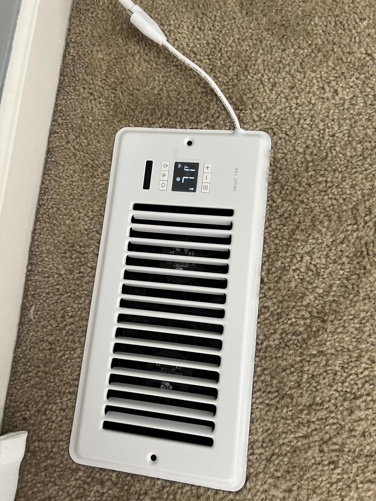VentiLux works perfectly on both floor and wall vents — as long as the size is standard 4"x10". It stays securely in place and the digital display remains visible in either position. Just plug it in and let it do the work.